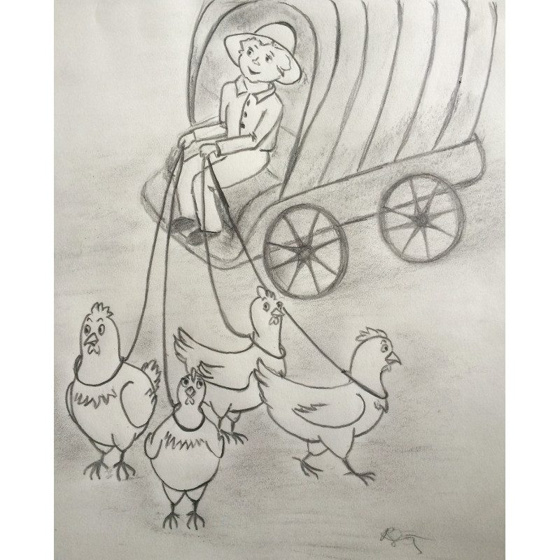(“Vežimas traukiamas vištų” - Ritos iliustracija)
